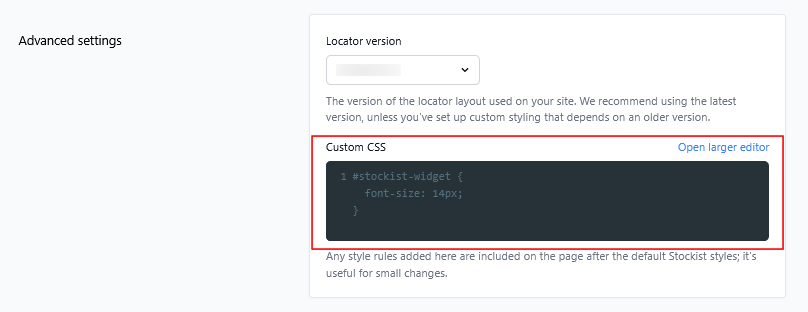 You can add custom CSS in your Stockist dashboard under Settings > Appearance > Advanced settings > Custom CSS.