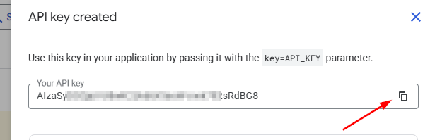 Click Copy to clipboard to copy the new key: