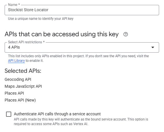 Next, enable the specific Google Maps services that Stockist uses: